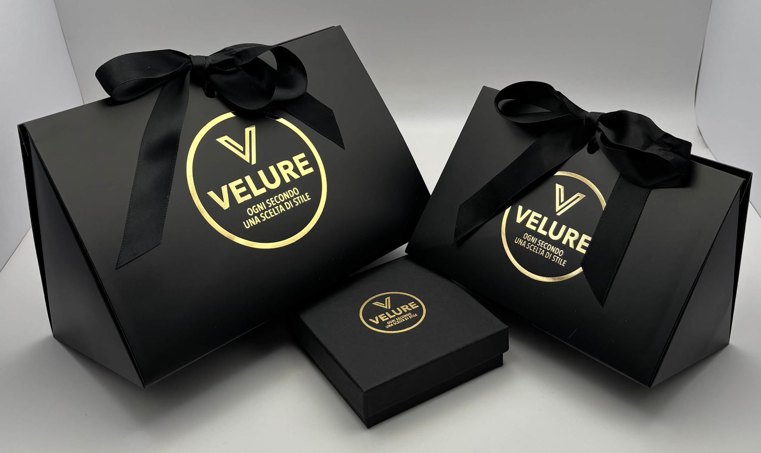La nostra dedizione non finisce con la scelta del tuo gioiello o orologio, ma continua fino al momento in cui apri il tuo pacchetto. Ogni ordine arriva con confezione regalo inclusa: elegante luxury bag nera con logo oro e fiocco, e con panno in microfibra per pulire i tuoi gioielli e farli brillare. Approfitta della nostra spedizione veloce e gratuita in 24/48 ore in tutta Italia. Scegli Velure e ricevi un’esperienza di acquisto completa, curata in ogni dettaglio.